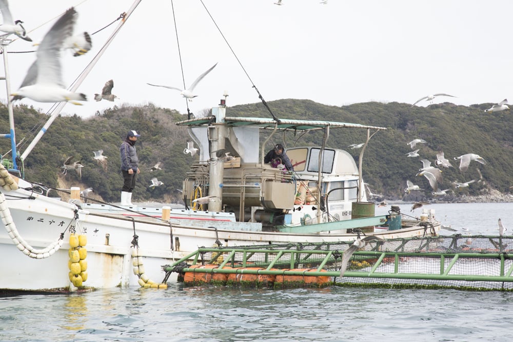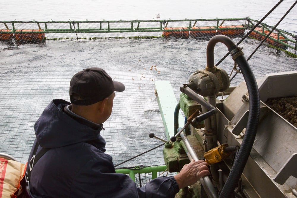 このほか、漁場環境を守るため直接生魚を餌料に用いることをやめ、加工餌料(モイスト、EP)を使用することにより海中に流失する残餌を低減しています。